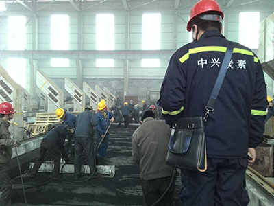 The cold ramming paste produced by ZhongXing carbon is a paste specially developed for the cathode carbon block of aluminum reduction cell, which is used to fill the large gap around the cathode, the gap between the carbon and connect the cathode steel rod and the cathode carbon block. This kind of paste has good heat shrinkability in the process of baking. The linear shrinkage is less than 0.15%. In the process of cathode construction, the temperature window is very wide, which can adapt to the environmental temperature of 17-42 ℃.